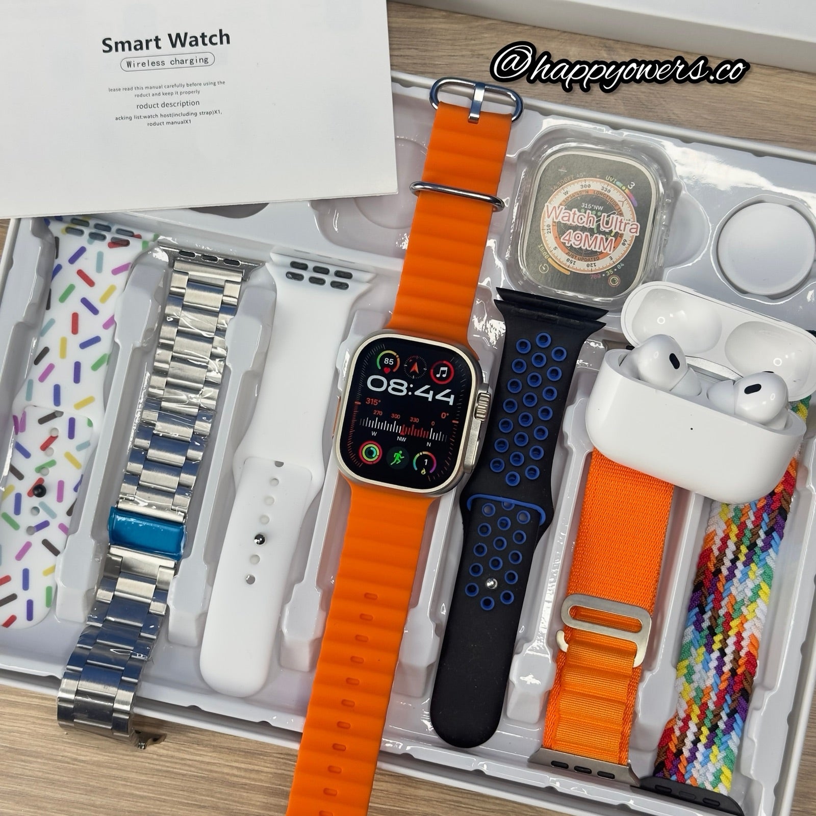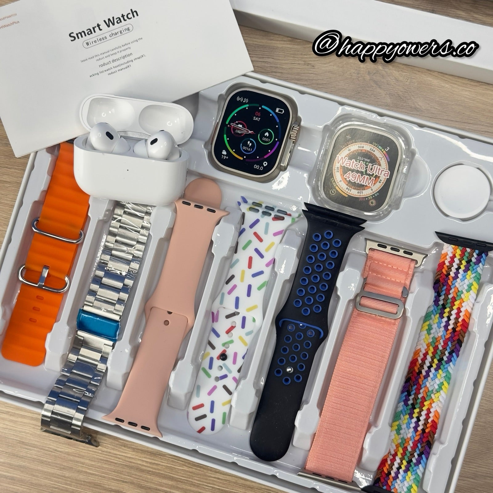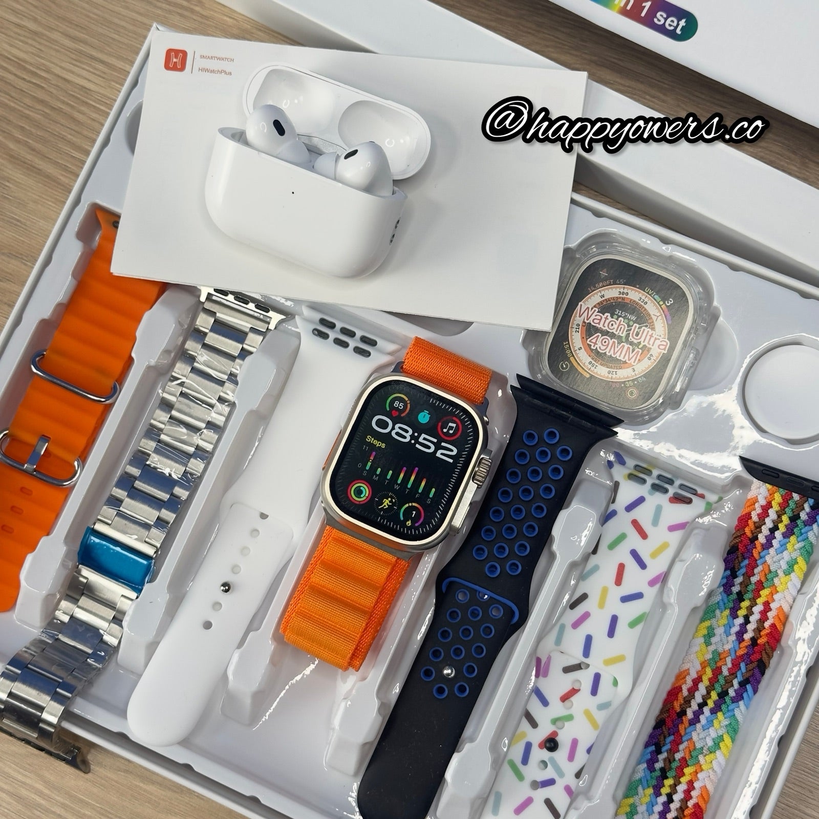 Tu paquete incluirá cargador para cada uno de tus dispositivos, 7 correas de diferentes materiales, acero, alpine, trenzada… y la mejor atención y el mejor servicio solo aquí 🤩🤩🥳🔥