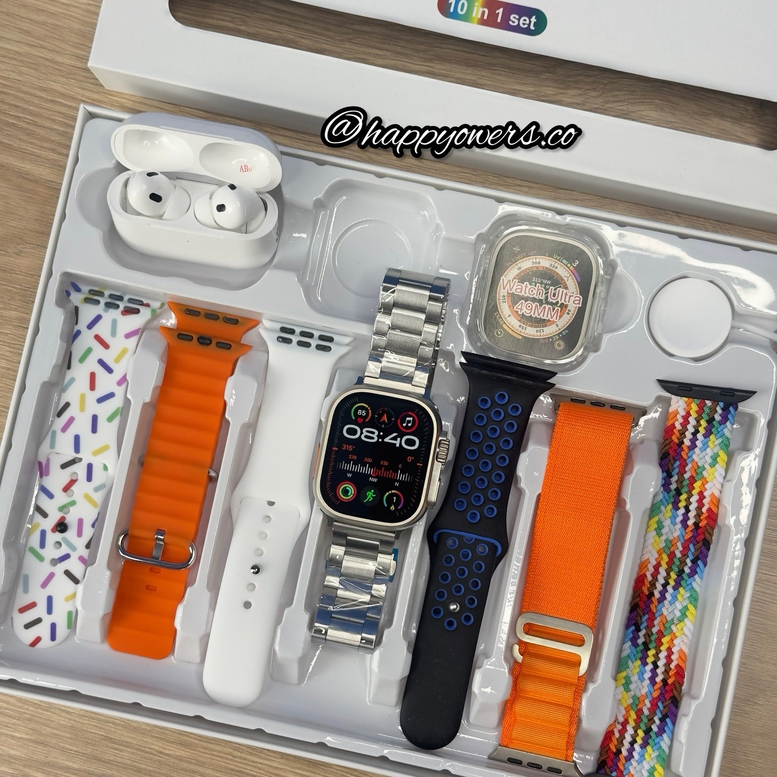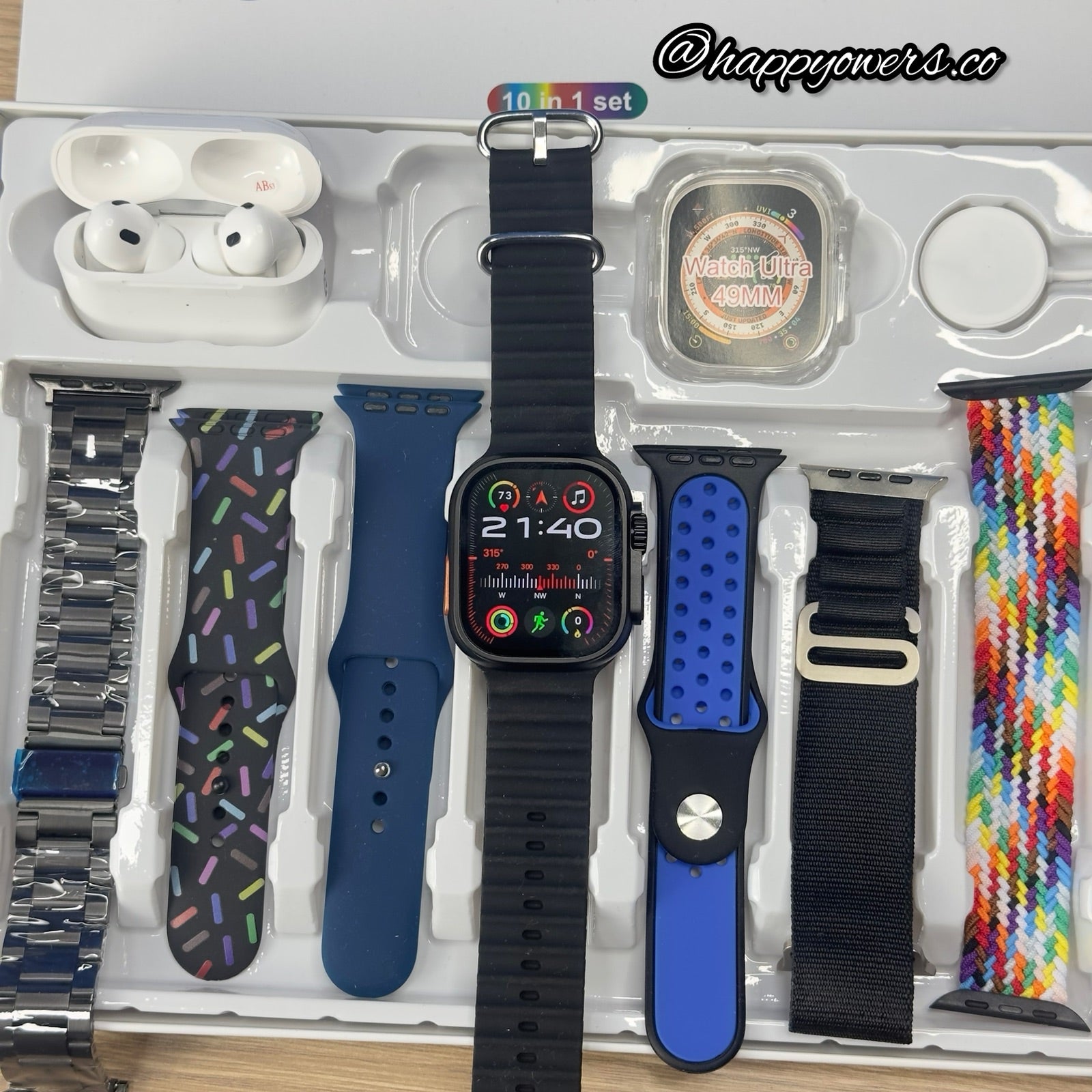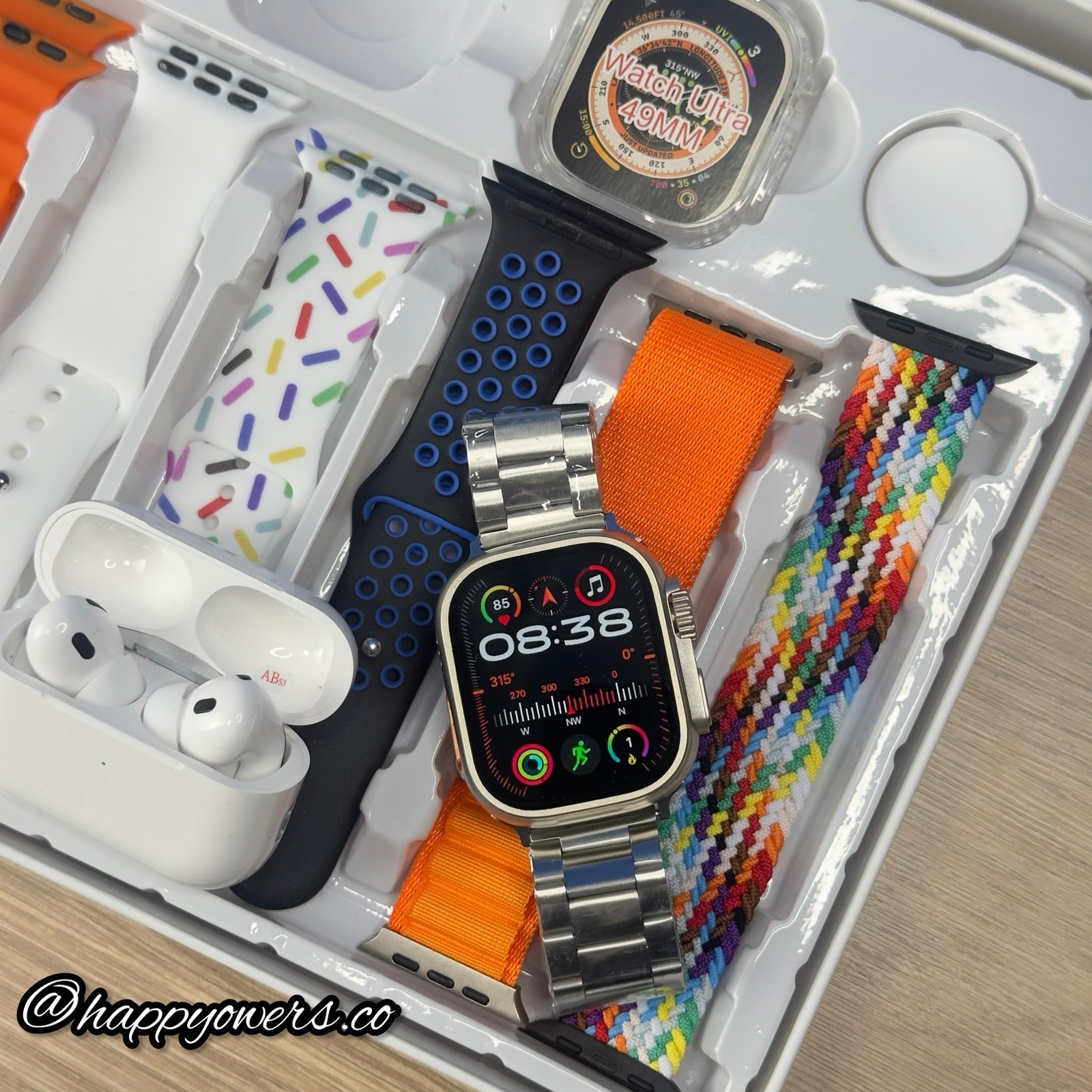 Tu paquete incluirá cargador para cada uno de tus dispositivos, 7 correas de diferentes materiales, acero, alpine, trenzada… y la mejor atención y el mejor servicio solo aquí 🤩🤩🥳🔥